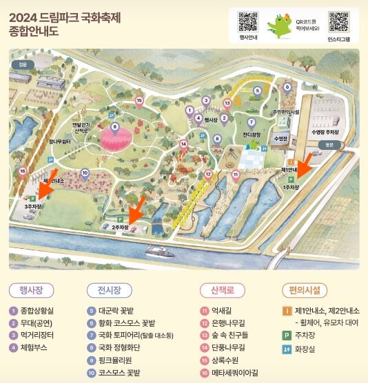 드림파크 야생화단지 주차는 제1주차장, 제2주차장, 제3주차장이 있습니다.